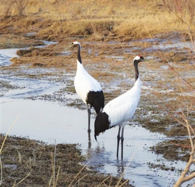 丹顶鹤是真正的“爱情鸟”,“一夫一妻制”的典范。在选择终身伴侣时,雄鹤主动求爱,引颈耸翅,“嗝—嗝—”叫个不停;雌鹤则翩翩起舞,报以“嗝啊—嗝啊—”的回答。双方对歌对舞,你来我往,一旦婚配成对,则不离不弃、偕老至终。如果一只因病或意外死亡,剩下的一只也不会再行婚配。更有感情至深者会不饮不食,长叫悲鸣不止,直至抑郁悲痛而亡。