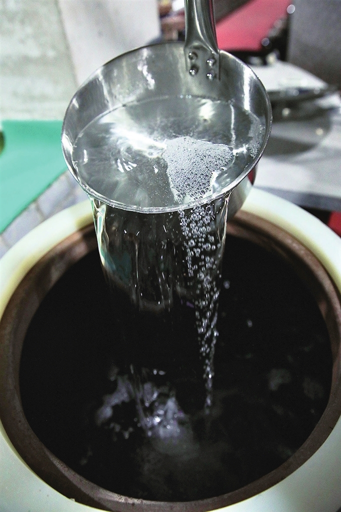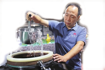 到了发酵阶段,采用地缸密封保温、固态分离发酵,严格控制温度与湿度,确保发酵过程顺利进行。“至此,就出现人们常说的‘原浆’。”