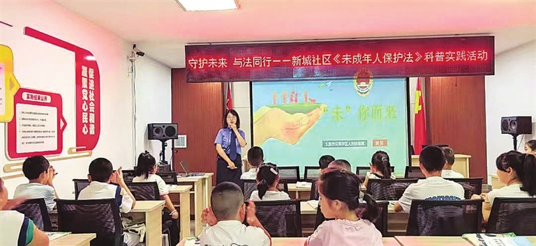又到开学季。为保护未成年人健康成长,尖草坪区检察院干警开学前夕走进新城社区,为50余名未成年人送上生动实用的法治宣传课。干警以“家庭、学校、社会、网络、政府、司法”六大保护体系为框架,结合当前未成年人权益保护热点问题,从预防校园欺凌、防范网络沉迷等方面,系统梳理了未成年人在成长过程中可能面临的风险及应对措施,引导孩子们树立明辨是非、安全防范的意识,护航未成年人健康成长。 刘友旺 摄