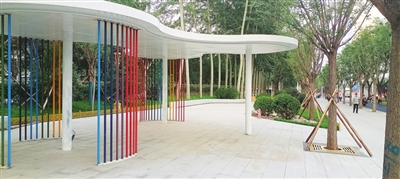 往东走几百米,公园路社区花园已基本竣工。记者在这里看到,受地势“狭长”所限,该处花园休憩娱乐功能有限,但功能性、服务性突出,主要由一块绿化景观小品、一处避雨棚和一条“长长”的座椅组成。“这儿是下元汽车总站的起始站、终点站,人流量非常大,座椅、雨棚都是急人所急、想人所想的设施啊!”一位正在等车的市民高兴地说。