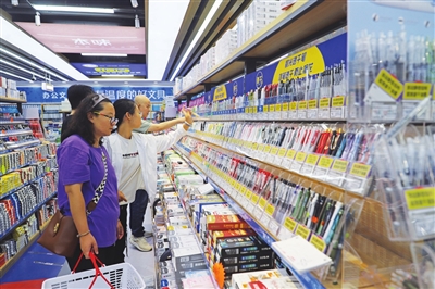 新学期即将开始,文具市场火热。图为8月31日,尖草坪小商品批发市场二楼文具区内挤满了选购文具的学生和家长。 张昊宇 赵心敏 摄影报道