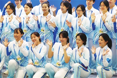 来自天津市10所高校的约千名青年志愿者在嘉宾接待、证件注册、物资分发等岗位上服务,展现青春力量。
