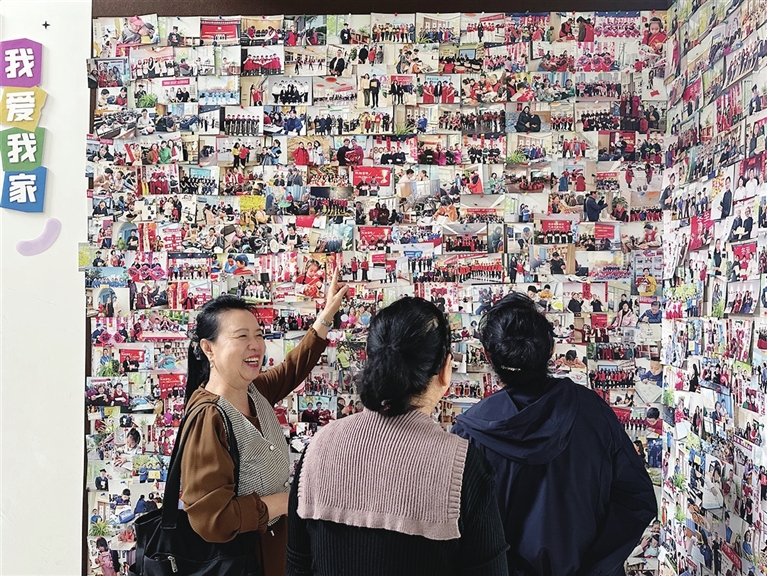 9月1日,几位居民来到西华苑社区党群服务中心,兴致勃勃地欣赏着墙上一张张照片。社区设置了这面照片墙,密密麻麻贴着数百张照片,都是工作人员日常抓拍的,有邻里温情瞬间,也有社区精彩活动。目前,“上墙”的照片越来越多,这里成了居民常来打卡的一个微景点。 李涛 摄