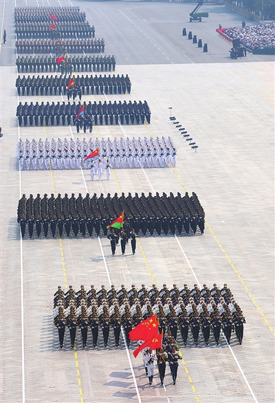铁流滚滚,战旗猎猎。接受检阅的80面战旗,从全军各部队遴选确定,来自东、南、西、北、中五大战区,涵盖陆、海、空军和武警部队,由团、营、连三级功勋荣誉单位代表组成。