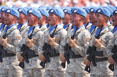 头戴蓝色贝雷帽、脖系蓝色丝巾的维和部队方队,既是对抗战胜利的隆重纪念,又展现了中国履行国际义务、维护世界和平的大国担当。从1990年首次派出5名军事观察员开始,中国军队参与联合国维和行动已经35年,累计派遣超过5万名维和官兵。中国蓝盔已经成为联合国维和行动的关键力量。