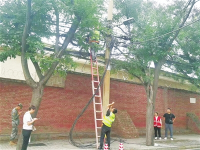 9月4日,许坦社区网格员高娃在许坦东街御警苑路段巡查时发现,一辆途经的水泥罐车把该路段的通信线缆挂落,垂落的电缆横挡路面,影响居民出行并存在安全隐患。网格员遂将情况上报至社区。为避免意外发生,闻讯赶到的社区工作人员在现场设置警示路障,提醒引导过往行人与车辆注意安全,绕道而行。同时,紧急联系电缆的所属单位移动公司,详细说明现场情况,请求支援。在等待专业人员到来期间,社区工作人员一直坚守在现场,防止意外发生。不久,移动公司工作人员赶到现场,查看情况后,当场派专业维修人员成功将垂落的电缆重新固定,并对周边线路进行全面检查,确保无其他安全隐患。