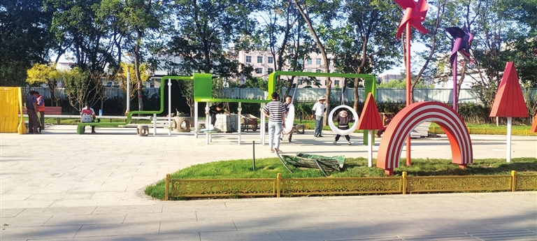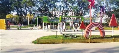 太原理工大学附属小学门前的童梦乐园,设施齐全、童趣十足。刘晓亮 摄