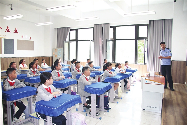 9月2日,郝庄派出所民警在桃园小学尚品分校开展法治教育活动,以预防校园欺凌为主题,向小学生传授遭遇欺凌的应对策略,引导孩子面对欺凌行为时勇敢说“不”,护航青少年健康成长。辛欣 摄