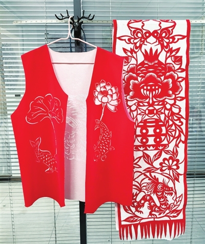 红毯铺地,乐声悠扬。十多位模特身着独特剪纸华服,步履轻盈,宛若从画中走来。衣袂翻飞间,龙凤图案盘桓于披风之上,寓意祥瑞;云肩中央,牡丹盛放,尽显雍容华贵,中国红的炽烈与青瓷蓝的清雅,在剪纸的艺术语言中交织共鸣。这是今年5月1日,古交市市民广场“庆‘五一’武四新师徒剪纸时装艺术展演”上的动人一幕。
