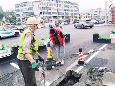 当时正值上班早高峰,考虑到该路段人流量、车流量较大,极易发生绊倒、卡陷等安全事故,如果重型汽车路过碾压,形成更大范围的塌陷就更危险了。于是,张晋琴在周边摆放隔离物品,提醒过往行人和车辆注意避让。同时,她迅速和市政部门取得联系,详细说明隐患位置及现场情况。