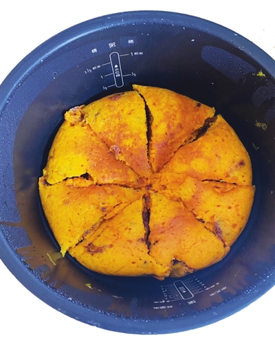 没承想才几分钟,电饭锅居然“嘀嘀”提示“可以开饭”。我愣了一下,老伴在旁边打趣:“没放水吧?这是锅自己着急了!”没办法,只好把半熟的面糊翻了个面,重新按下煮饭键。随后又用铲子将圆形的烤糕划几下分成8份三角形,盖上盖子继续焖了会儿。看来看着简单的事,实则藏着门道,真要做好得下功夫琢磨。是烤糕的面醒得不够,还是电饭锅没掌握好火候?说到底,是我当初没认真记下视频里的细节。改天换电饼铛试试,说不定效果能好些。