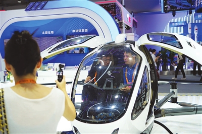 这是一款展出的可载人飞行器(9月11日摄)。