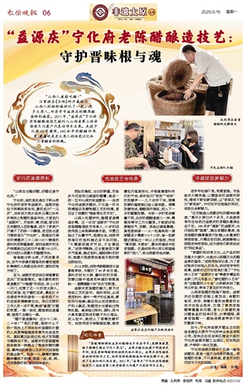 “醋不就是酸吗?还分十二年、二十年?”“现打的醋,能有什么不同?”柜台上不同年份的陈醋和打醋的人流惹得福建游客黄先生连连发问。直到真正品尝过后,他才发现醋与醋确实不同。益源庆的老陈醋闻起来就有一种融合了粮食发酵的醇香、熏烤后的焦香以及岁月沉淀陈香的复合香气。轻抿一口,醇厚的酸唤醒味蕾却不刺喉,细细一品,柔、绵,还有隐隐的甜,更加回味悠长。