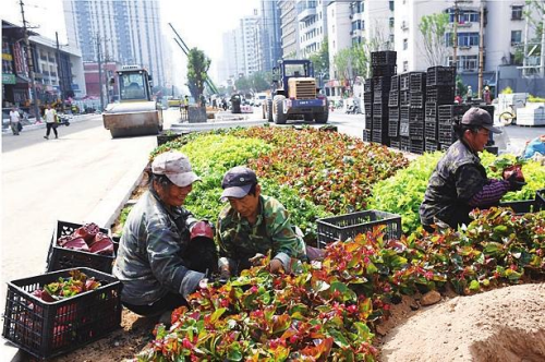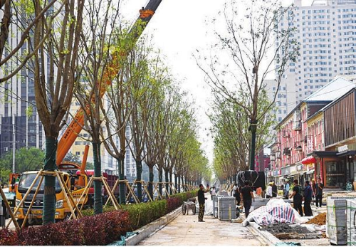 9月15日,新建路改造工程府西街口至北沙河段,道路绿化作业正有序进行,目前,已经完成工程量的80%。