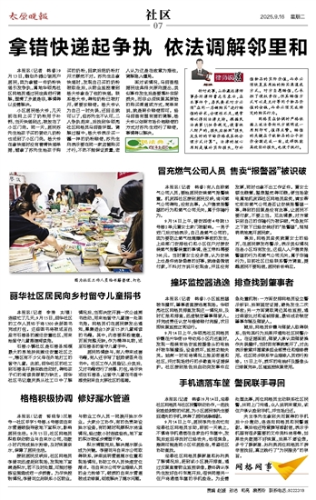 本报讯(记者 韩睿)9月13日,融创外滩公馆两户居民,因为拿错一件奶粉快递引发争执,属地华硕苑社区网格员通过民法典进行调解,理清了矛盾是非,事情得以妥善解决。