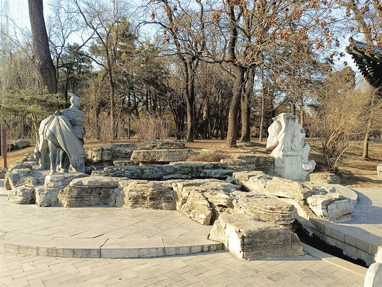 历史上,饮马泉便颇受重视,常有社会名流、文人贤达前来凭吊。如今它位于唐园内,这座以唐太宗李世民为主题的园中园里,饮马泉是唯一与李世民经历相关的遗迹,人们也乐于用帝王饮马的故事为园林增添历史氛围。而李世民恰好有《咏饮马》诗传世:“骏骨饮长泾,奔流洒络缨。细纹连喷聚,乱荇绕蹄萦。水光鞍上侧,马影溜中横。翻似天池里,腾波龙种生。”要知道,现存唐诗五万余首,李世民的诗仅89首,《咏饮马》便是其中之一。