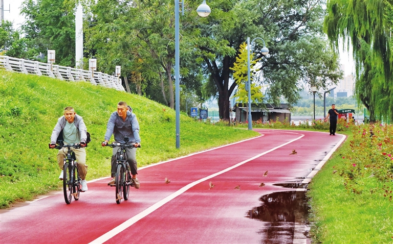 随着一场阵雨,我市迎来降温天气。图为9月16日,市民身着秋装出行。