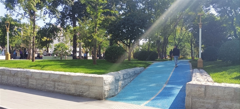 9月16日上午10时许,在迎泽大街西段泽峰园西南角,市民周先生停下车,从后备箱取下电动轮椅,把父亲扶上去坐好。“行啦,你走吧,中午我自己回就行啦!”看着老人操控车辆沿着缓缓的坡道进入公园后,周先生放心地离开。据了解,老先生去年发生过脑卒中,身体有些不灵便。“能走,但不能多走,尤其上下楼梯比较费劲!”因此,有段时间老人很不愿意出门。迎泽大街西段通车后,周先生父子发现泽峰园改造得焕然一新,西边两条无障碍通道“简直是为我们量身打造的”,一条稍短、有一点坡度,可以慢慢走,一条稍长、几乎不觉得有坡度,走路、坐轮椅愈发平稳。进入公园,记者看到,这里有健身器材,都比较适合老年人使用,还有象棋摊儿、扑克摊儿,不少老年人围在一处,谈笑风生。
