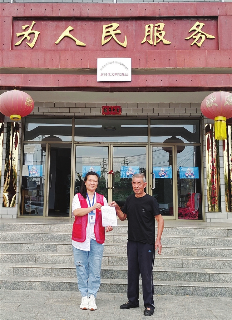 “太感谢你了,可帮了我的大忙,以后出入就方便安全了。”陈佳到王大爷家进行回访,老人抚摸着扶手护栏连声道谢。随后,王大爷将感谢信送到村委会,以此表达心中谢意。