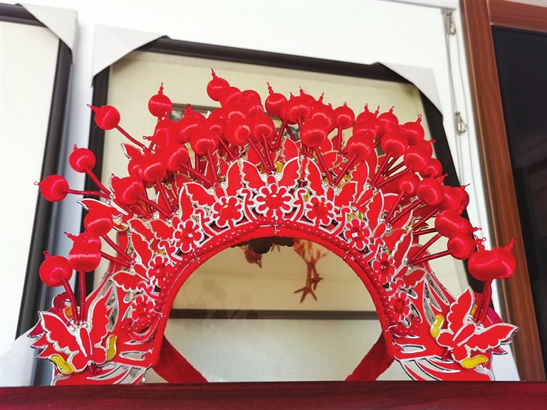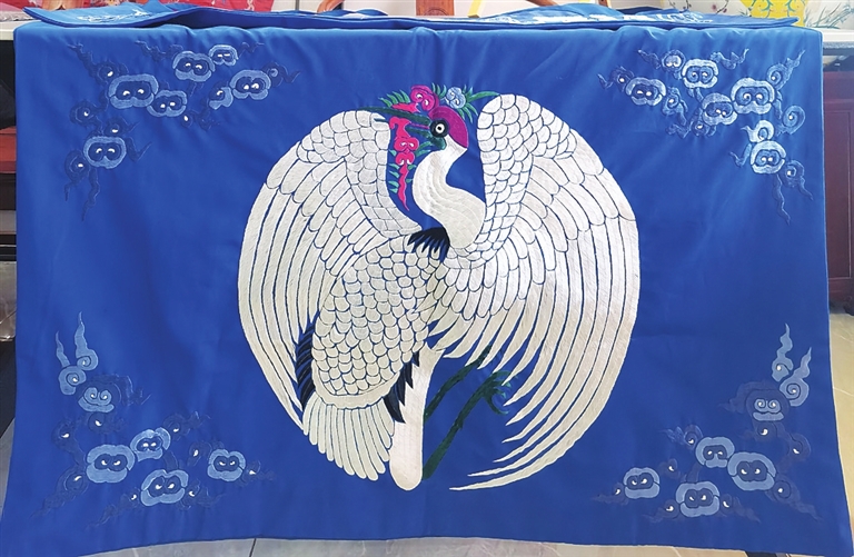 墙角展柜里,“龙九子”茶杯垫、“幸福一生”云肩、“好运连连”荷包挂件等作品,形式与风格不同、主题不一的精美刺绣作品,令观者赞叹不已。她轻抚着一件珍藏多年的绛红绢布云肩,锁针勾勒的雷纹蜿蜒如初:“瞧,这针脚与如今的晋绣技法一脉相承。”