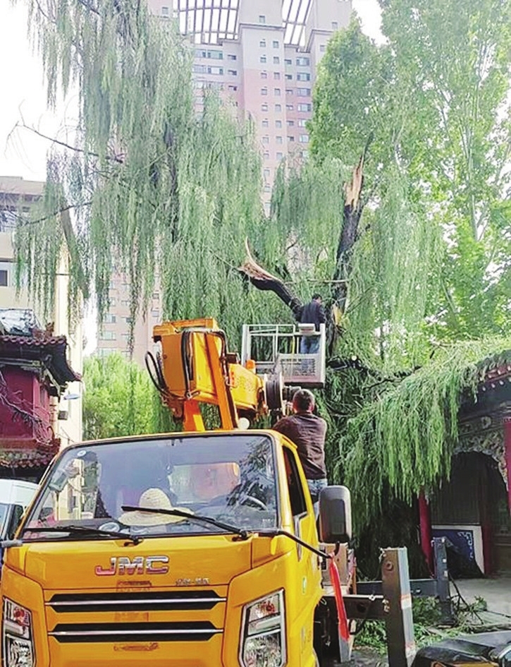 9月16日,碑林公园东侧一棵老柳树在风雨中发生侧枝断裂,一根长约5米、枝叶茂密的枝干倒悬于人行便道上空,影响市民通行,也存在进一步坠落的危险。此时,正在辖区内进行雨后安全巡查的网格员武利利接到居民反映,立即赶到事发现场。在准确判断现场情况后,她立即通过文字和现场照片相结合的方式,向社区负责人详细报告树木情况,并同步致电市园林局说明险情,协调属地的迎泽区园林局尽快派员处置。
