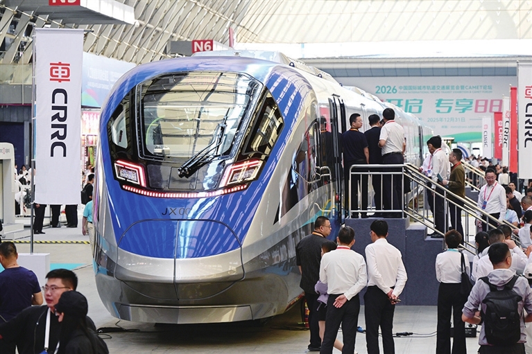 9月18日,由中国中车自主研制且拥有完全自主知识产权的首列中国标准智能市域列车暨京雄快线列车在青岛亮相,人们在中铁青岛世界博览城参观智能市域列车。该车搭建了中国标准体系,关键核心技术全面自主化,具备时速200公里GOA4级全自动运行能力。同时,创新搭载十余项核心技术,在智能化、安全性、舒适度、节能降耗、运用经济性等方面实现全方位升级。 新华社 发
