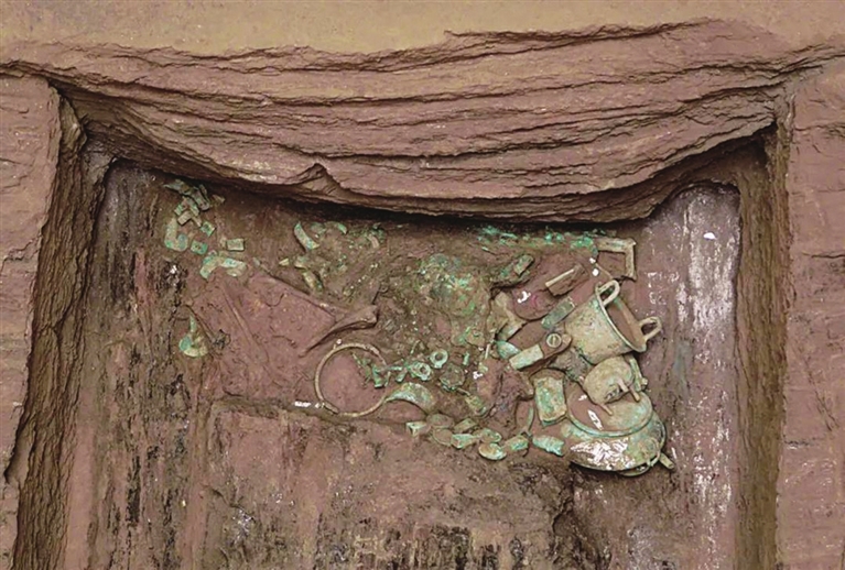 此次公布的编号为M1006的墓葬,为长方形竖穴土圹墓,葬具为一椁二棺,木质均已腐烂,仅存灰痕。墓主为一男性,约40岁,墓内殉3人,其中两人性别不详,年龄在13岁至14岁,另一人为成年女性。墓葬东侧为该墓的陪葬车马坑。
