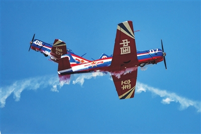 这是空军航空大学“红鹰”飞行表演队带来的动作——“双机点赞”。此前,他们曾在第十五届中国航展上首次表演这个动作。