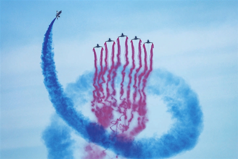 高难度的飞行表演背后是矢志打赢的不懈追求。“红鹰”飞行表演队队员张力说:“这是人民空军的硬核浪漫。”