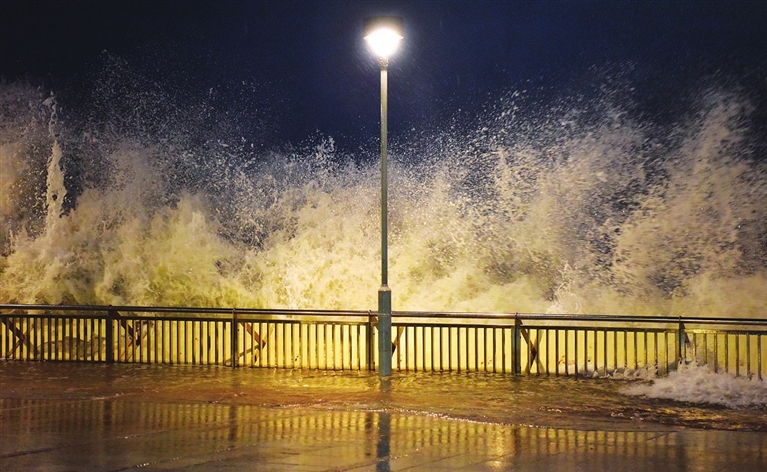 9月23日,海浪冲击香港柴湾杏花邨海岸。