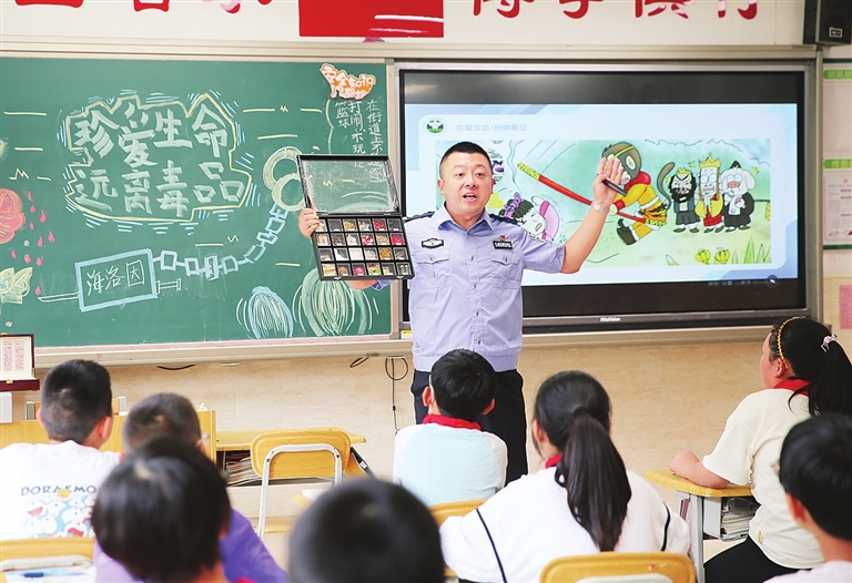 9月24日,郝庄派出所在山水城小学开展禁毒宣传活动,民警通过真实案例敲响校园防毒拒毒的警钟,并鼓励孩子们争做禁毒小宣传员,把禁毒知识分享给朋友和家人,共筑安全防线。 辛欣 摄