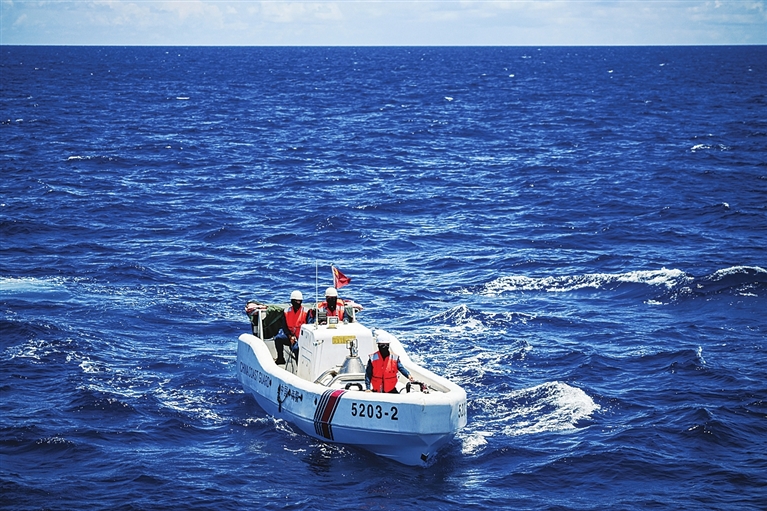 夏秋之交,祖国“南海明珠”壮阔浩渺,风光无限,海洋经济活动进入繁荣时期。为守护好这片和平、友谊、合作之海,中国海警直属第五局多个舰艇编队在我国南海仁爱礁附近海域执行值守巡航任务。中国海警执法员克服南海海域近期高温高湿、台风频繁等不利条件,开展常态巡逻执法、服务过往船舶、清理海洋垃圾、组织日常训练等工作。面对意图非法冲闯我国仁爱礁附近海域的外方船只,中国海警果断依法采取管控措施,坚决警告驱离。无论面对多大的风浪,中国海警守护南海稳定、捍卫祖国领土主权和海洋权益的决心始终坚定不移。