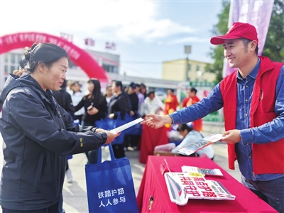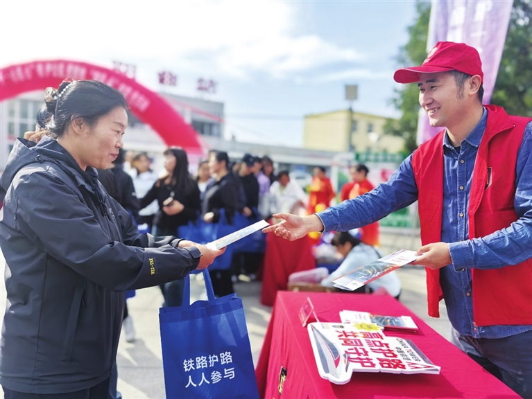9月28日,由市铁路护路联防中心、中铁太原局集团有限公司、阳曲县委政法委等单位在阳曲县火车站广场联合举办“手拉手·心连心”铁护公益活动,让群众在享受便利服务的同时学习安全知识。 牛利敏 陈璟 摄影报道