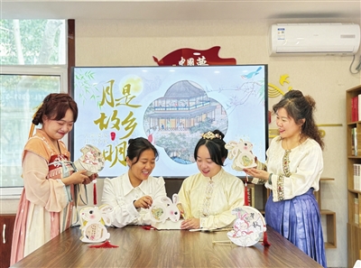 9月26日,和泽苑社区举办做花灯活动,不少年轻人特意穿上了汉服。别具特色的花灯做好,大家举着自制的灯笼拍照留念。“汉服配花灯,绝美!”25岁的陈萱说,自己对传统服饰很感兴趣,汉朝曲裾的端正、唐朝襦裙的鲜活、宋朝褙子的雅致,都是可感知的文化符号,与中秋佳节很搭。当天,光华街社区的绘制团扇活动中,也有多位居民身穿汉服。一件件传统服饰呈现出国潮之美,营造出浓浓的古韵氛围。
