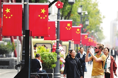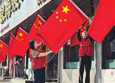 与何蕊一起,这条商业街上的116家店铺已陆续自发挂起了国旗。蔚蓝天空下,一面面国旗不仅扮靓了街道,更点燃了人们心中的奋进激情。何蕊说:“看着国旗,心里就有一种自豪感,还有一种使命感,激励着自己努力工作,祝愿我们的国家更加繁荣富强。”