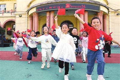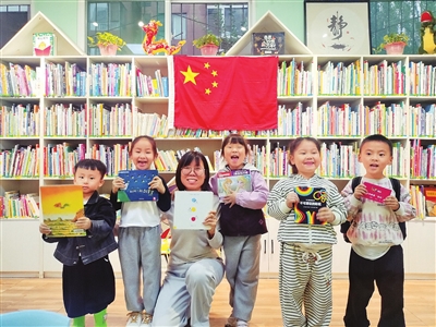 爱国情怀的种子,更需在稚嫩的心田早早播下。国庆节前的最后一堂课,北河湾东街“童趣绘本馆”内,店主王丽媛正在组织一场坚持了5年的特殊仪式——一场献给孩子们的爱国课。她将场馆打扫得一尘不染,并郑重地在门口和书架旁悬挂起崭新的五星红旗。“孩子们一进馆,第一眼就能看到这抹鲜红。我希望通过这种方式,让爱国的种子在潜移默化中生根发芽。”她微笑着说。当晚,她为孩子们放映了电影《我和我的祖国》,看完之后,王丽媛引导孩子们分享自己的梦想。有的想去天安门看升旗,有的想成为运动员让国旗在赛场升起,有的想翱翔太空……童言稚语中,家国情怀悄然流淌。那面高高飘扬的国旗,如同一座桥梁,连接着历史与未来,守护着被点燃的星星之火。