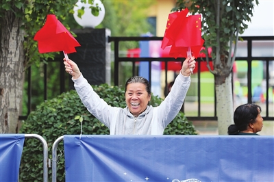 9月29日,后北屯街,和泽苑社区网格员高小梅正协助商户何蕊调整国旗的位置。“再挂高一点,好!”40岁的何蕊望着迎风招展的国旗感慨:“‘大家’越来越强,‘小家’的日子也一年更比一年好。”