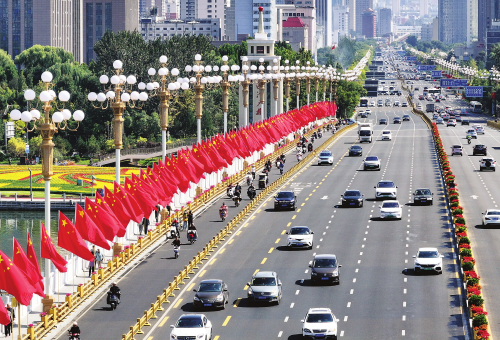 双塔二社区公交大院的陈文龙,在自己的车上插上国旗,让这抹“中国红”随车流动,把对祖国最诚挚的祝福传遍大街小巷。令他惊喜的是,当他驾车驶入街道时,发现不少私家车主也自发地在车上插起了国旗。一面面鲜艳的国旗在行驶的车辆上飘扬,一抹抹红色连成流动的风景,这种不约而同的爱国表达,让陈文龙更加心潮澎湃。车轮滚滚,国旗飘扬。车内,跃动的红色映照着他喜悦与自豪的脸庞;车外,流动的“中国红”也为节日的太原增添了一道风景。