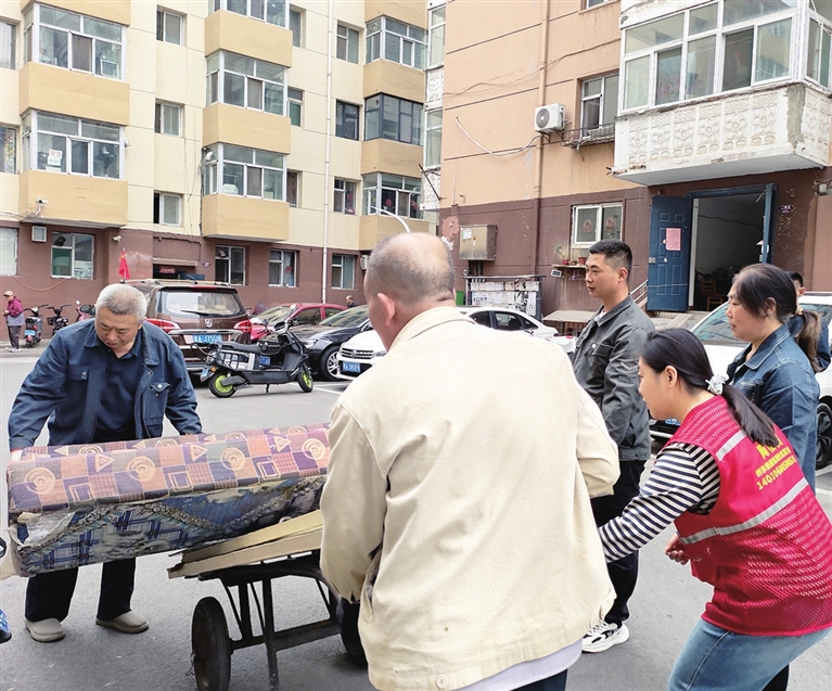 清理当日,针对逾期未清理及无人认领的废弃物,网格员与志愿者联合物业人员,展开了彻底的清理整治。大家分工协作,肩扛手抬,将一件件沉重的大型家具从楼道艰难搬下,再装车运走。整个过程高效有序,在还楼道以整洁畅通的同时,也尽量减少了对居民生活的影响。