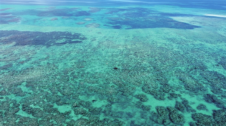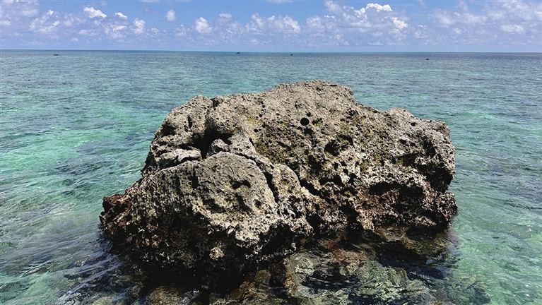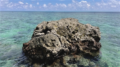 10月2日拍摄的黄岩岛露出水面的南岩礁石。新华社 发