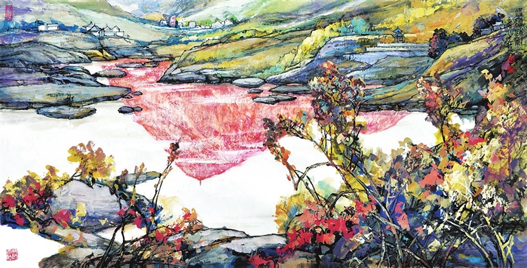 这一系列作品融汇中西之法:以中国水墨点线为根基,又融入西方光色造型的长处。描绘汾河风光时,他打破传统绘画的二维空间限制,让画面生出纵深的立体感,河水的流淌、岸边景物的层次皆跃然纸上;色彩运用上则大胆采用浓墨重彩,赋予画面强烈的视觉冲击力。比如描绘汾河夕阳时,他以赤橙黄绿青蓝紫等丰富色彩,展现晚霞映照下河面的粼粼波光,一改传统绘画光影表现单一的局限。
