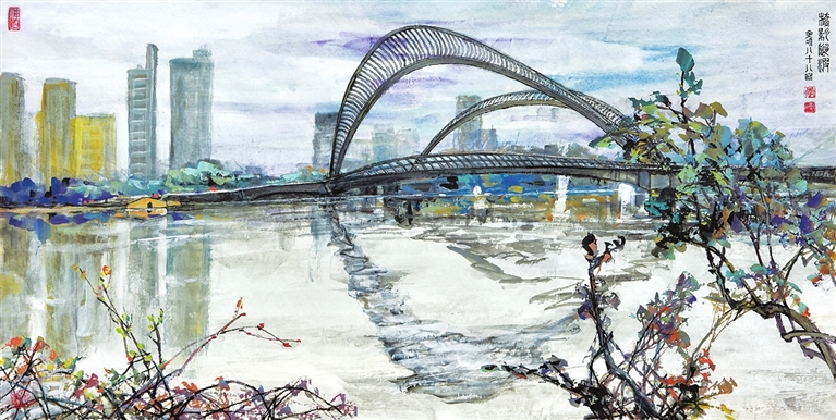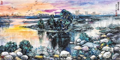 《汾河新十二景》不只是对汾河景色的描摹,更蕴含着李夜冰先生对家乡的热爱与对时代发展的歌颂。透过这组作品,我们能看见传统与现代的碰撞融合,感受到艺术创新的独特魅力。李夜冰先生用彩墨为汾河谱写了一曲赞歌,也为中国画坛添上了一抹绚丽色彩。