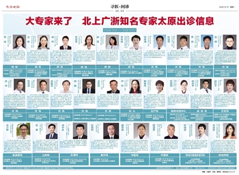 出诊时间:府城院区10月14日上午 汾东院区10月15日、16日、17日上午