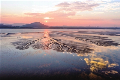 每年农历八月中下旬,浙江钱塘江大潮都会呈现“海阔天空浪若雷”的壮丽奇观。大潮过后,潮滩上形成形态各异的“潮汐树”景观,为观众观潮增添趣味。