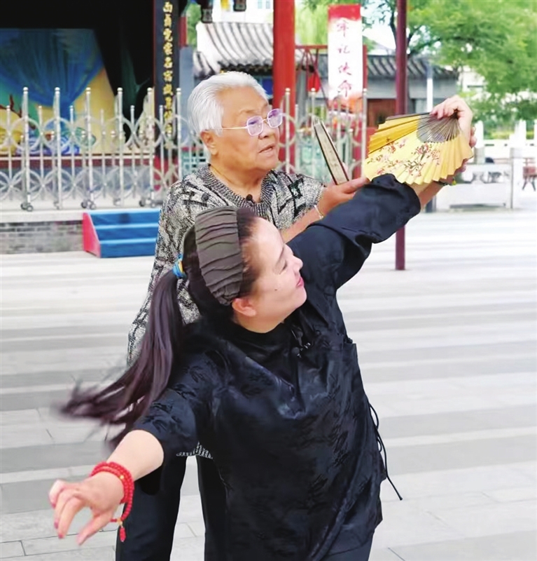 薛林花格外重视理论学习,她扮演的角色从不拘泥行当的局限。她会先深挖人物内心与性格,再将其融入戏曲程式表演,这是她塑造艺术形象的可贵之处。在《五女拜寿》中,她以“破格小旦”风格演绎势利的二女儿杨双桃:上场时,她迈着匆匆台步奔向九龙口,碎碎念着如何在父母面前表现,却不慎被砖绊倒;随后一连串彩旦特有动作——抬腿、抽鞋、掸土、拍手、整头、揪衣、闪腰,一气呵成,尽显角色的忙碌;而她对得势父亲的殷勤(捶背、掸座、捋须),与父亲失势后的冷漠形成强烈反差,将人物性格刻画得活灵活现,既引观众兴趣,又促人深思。无论在农村还是城市,这段戏总能引发台下阵阵叫好。