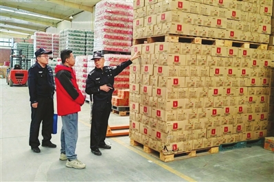 10月13日,公安尖草坪分局不锈钢园区派出所民警对屯汇市场仓库开展安全检查,并向仓库负责人宣讲场所消防、用电、防盗等安全要求,确保各项安全管理制度及应急处置预案落实到位。 辛欣 摄
