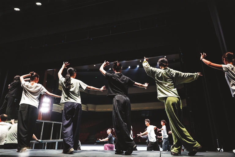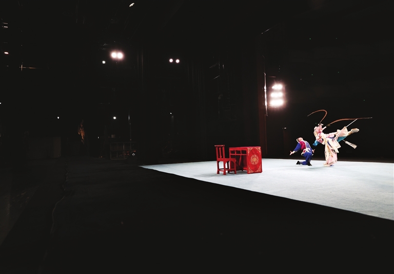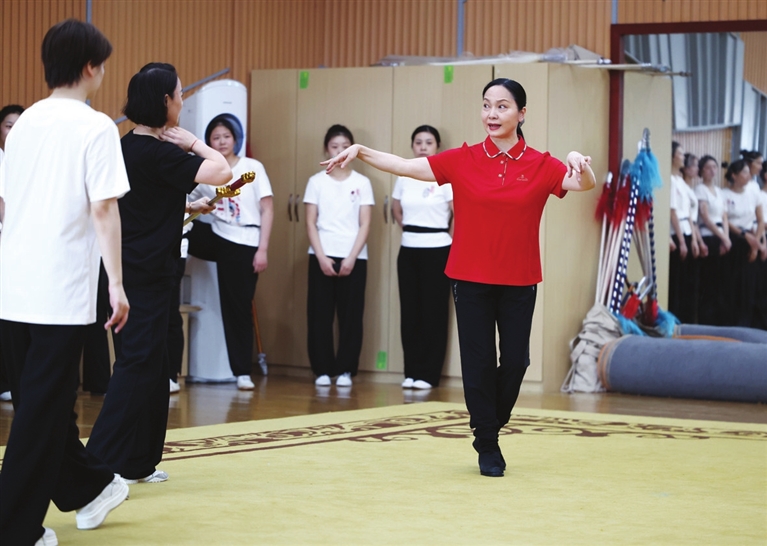 10月12日,二度“梅花奖”获得者、全国三八红旗手陈美兰(左)在指导演员排练剧目。