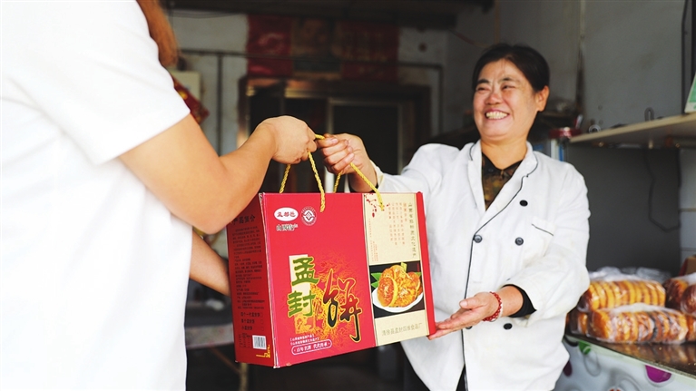 还有客人刚拎着饼,就掏出手机下单快递。指尖在屏幕上敲下“北京东城区”“上海浦东新区”“成都武侯区”……快递单贴在纸箱上,跟着货车驶向远方。那带着热乎气的饼香,裹着家人的牵挂,也载着游子的乡愁,成了千里之外最亲切的“家乡信号”。