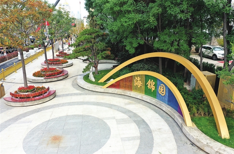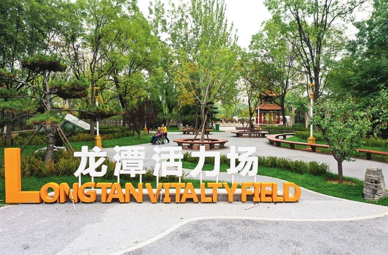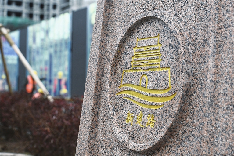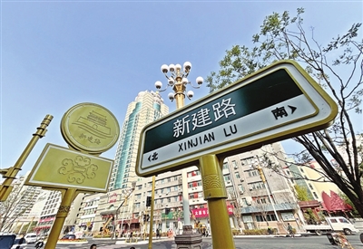 值得一提的是,建设方还对新建路的城市文化和历史记忆进行了深入挖掘与重新激活。以阜城门和城西水系为雏形,提炼出新建路的专属logo,并将其印制在人行道阻车器、交通信号灯灯杆、隔离护栏、便道座椅、垃圾箱、公交站台等城市家具上,让“新老共生、烟火传续”的理念融入街道肌理。