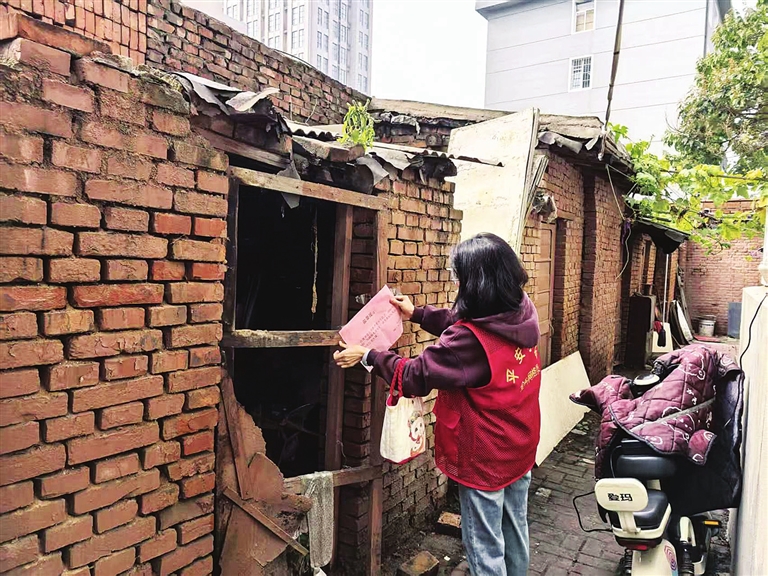 面对这一紧急情况,王保连沉着应对。她立即向上级部门汇报,并迅速在危险区域外围设置简易围挡,现场劝导居民和行人绕行,以防发生意外。同时,她在仓库外墙及入口等醒目位置张贴安全警示通知,明确标注“房屋危险,请勿靠近”,以增强居民防范意识。此外,她还通过“网格通”App,将现场照片、位置信息和情况说明实时上报至街道综合指挥平台,为后续专业处置争取了宝贵时间。
